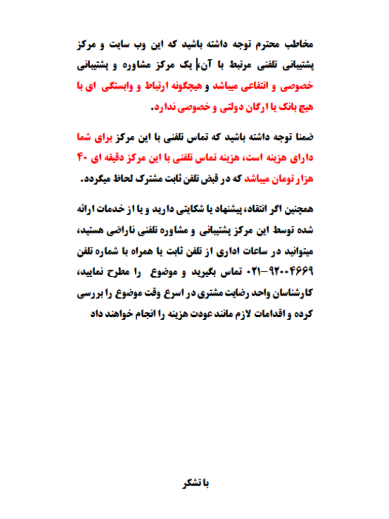 پشتیبانی پیشخوان مجازی بانک رسالت